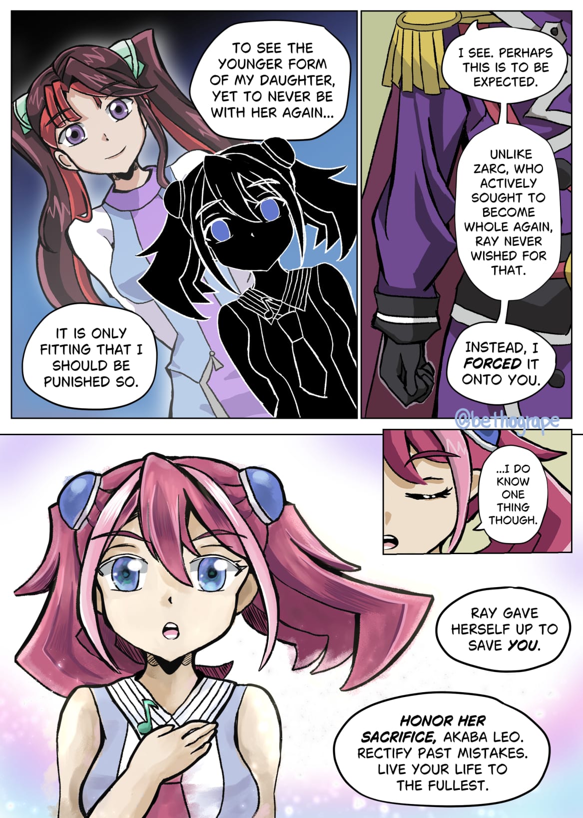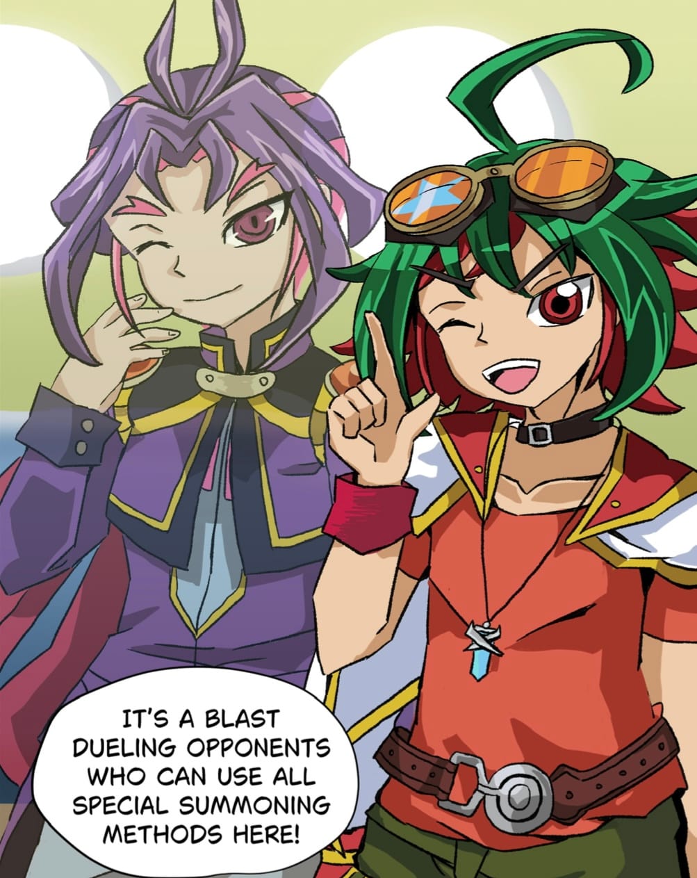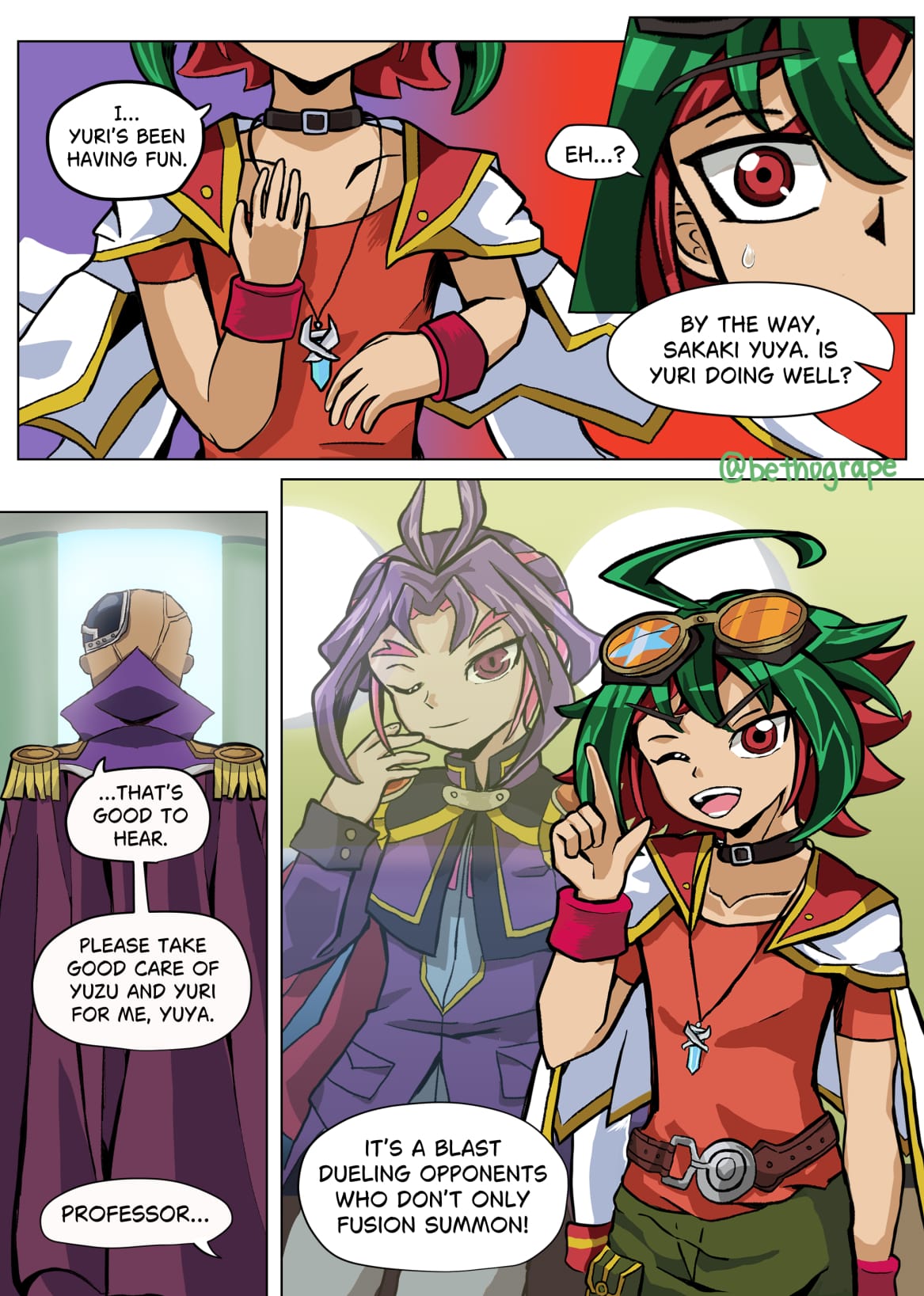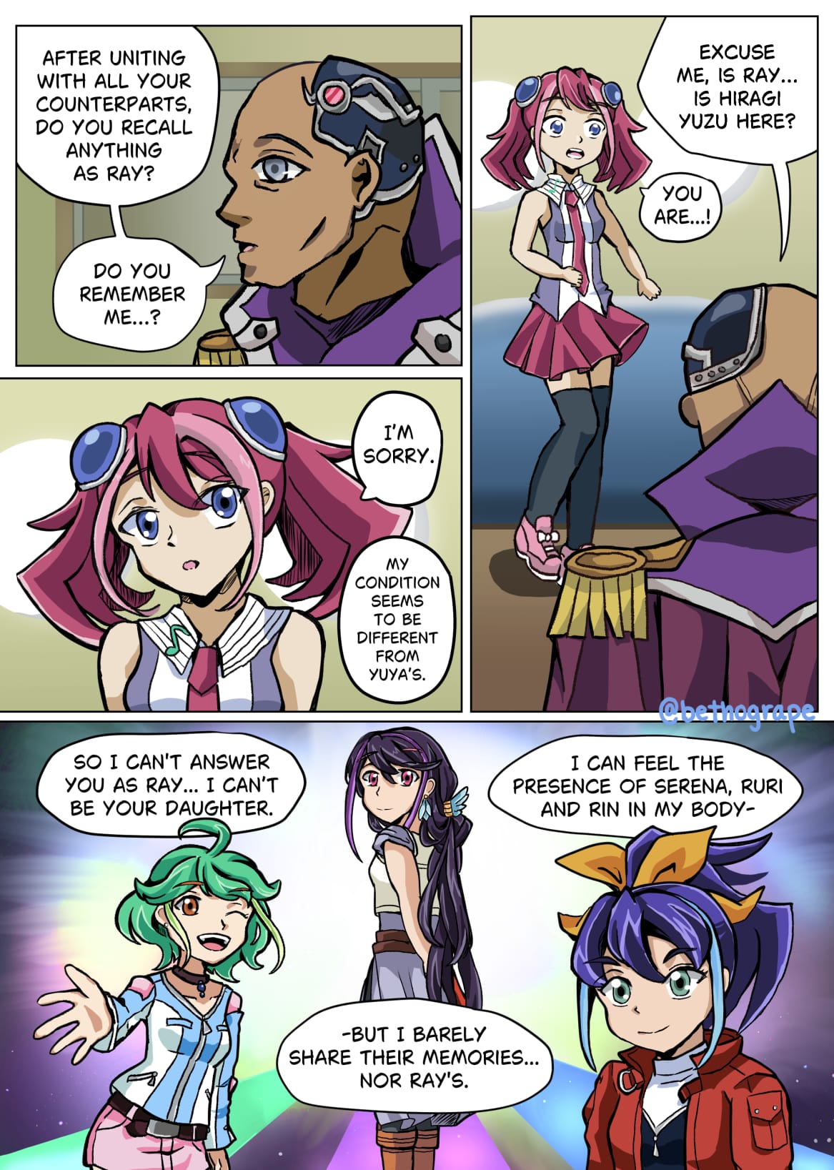 - Yuzu no longer has her bracelet at the end of the Arc-V anime. While her Duel Links avatar still has one, I decided to keep her bracelet-free in this post-canon comic to honor her design change (after she merged with her counterparts)