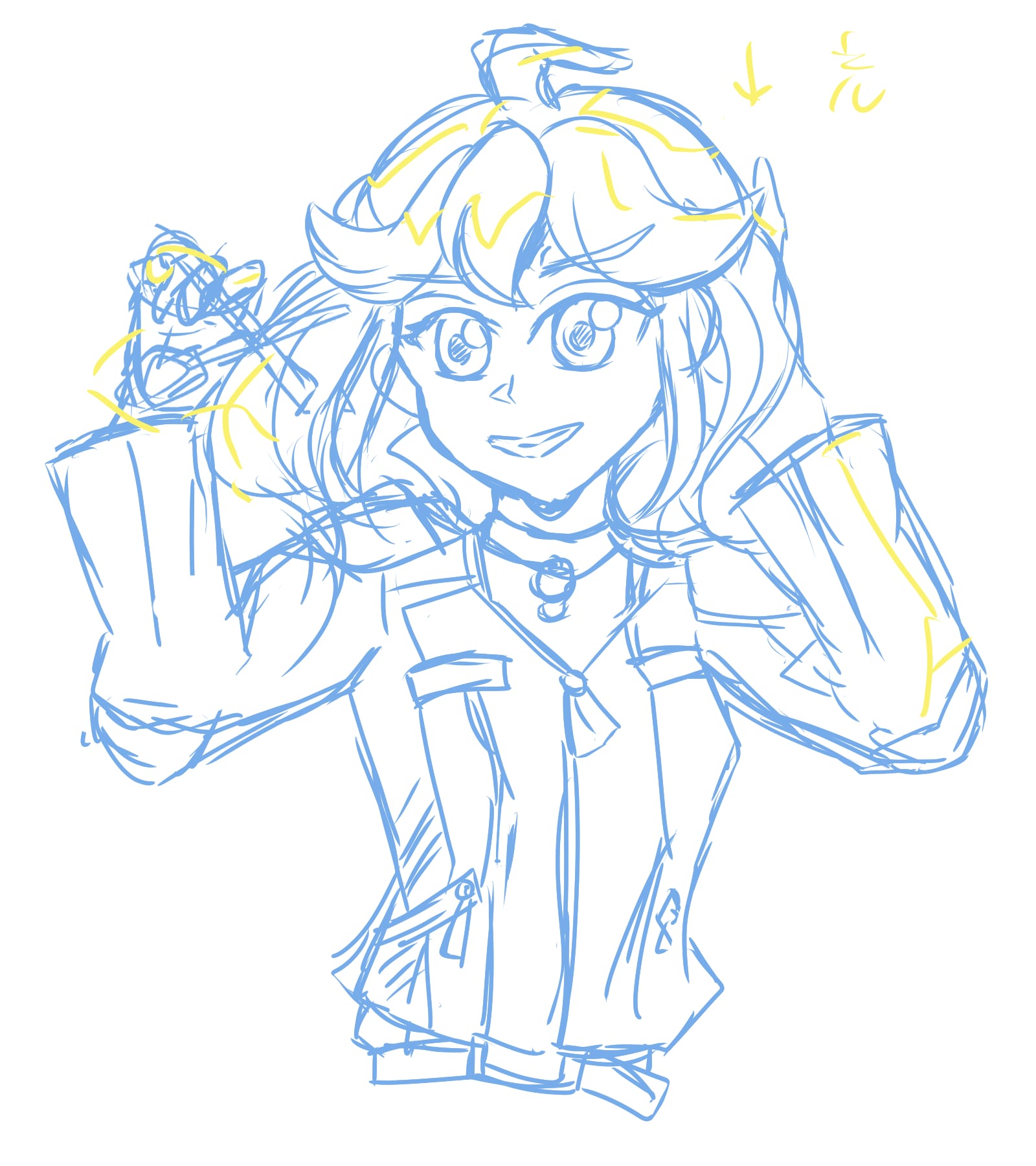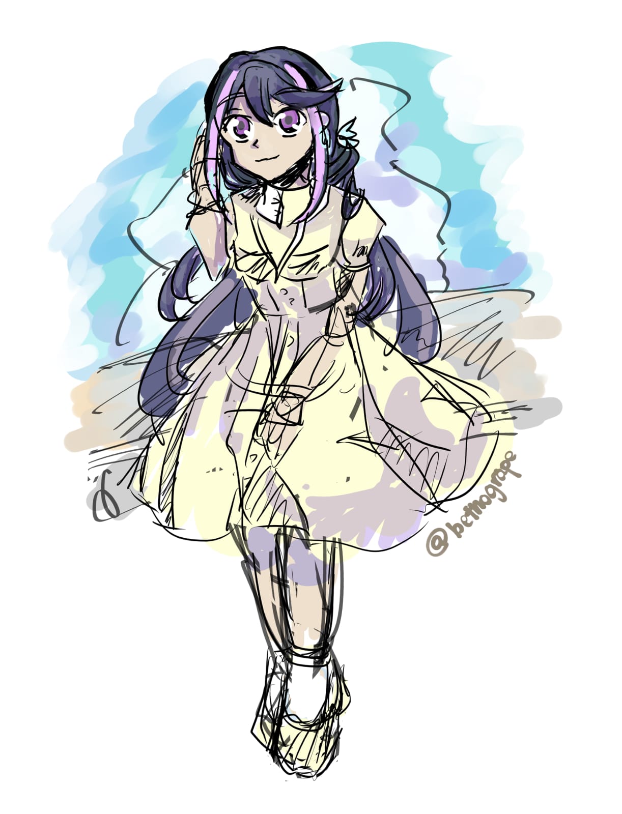 Doodled this after a very tiring day at work. I find Ruri’s pre-war yellow dress to be very cute, and strive to draw it whenever possible… the contrast between this idyllic dress and her post-war battered attire is very striking too.