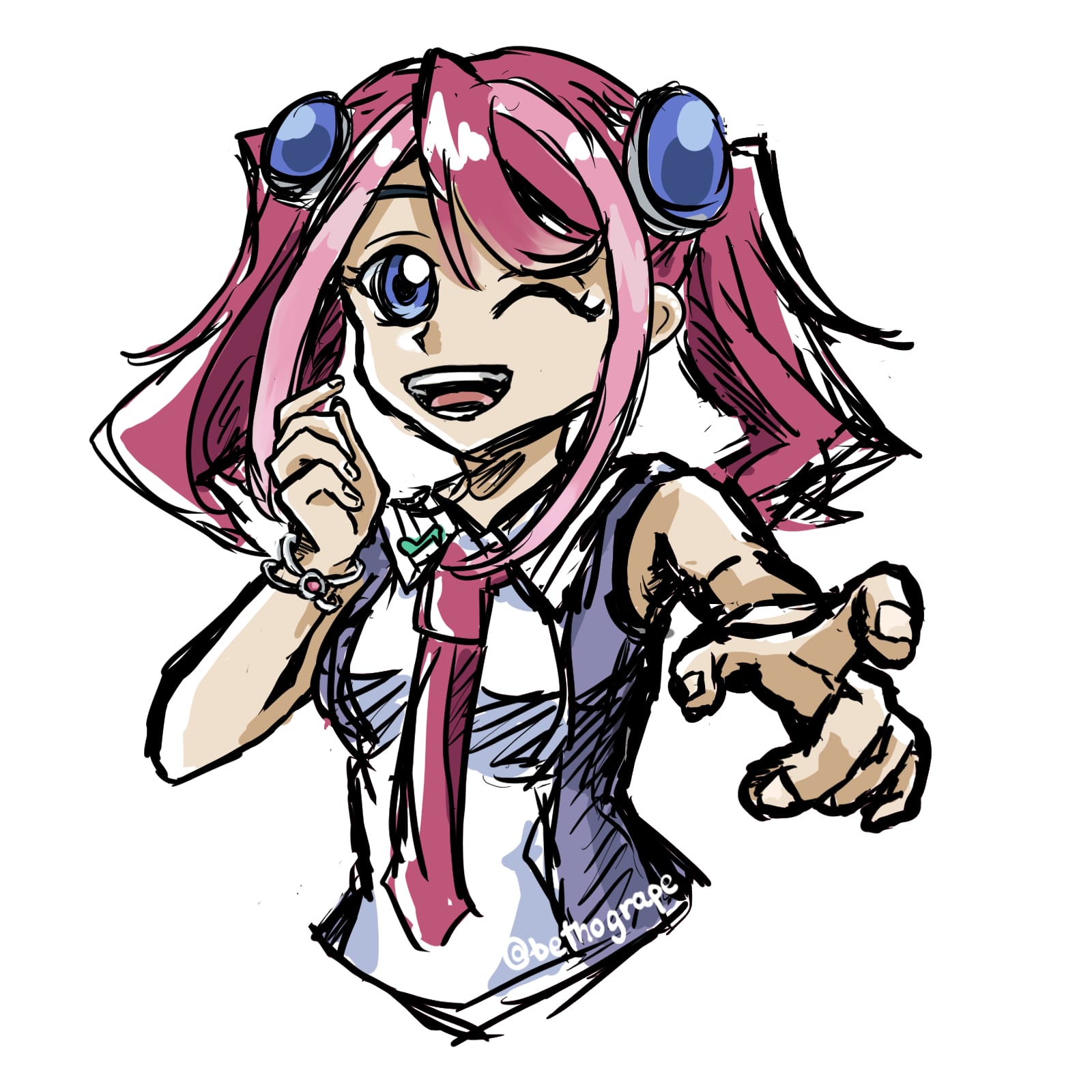 Yuzu says cheese! Drew this to practice foreshortening hand poses (hands that stretch out close to the camera), which is a staple of the Yu-Gi-Oh art style